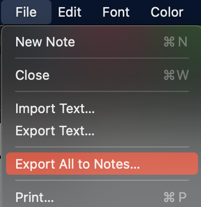 다시 상단 File로 가면 모두 노트로 보내기라고 있는데요